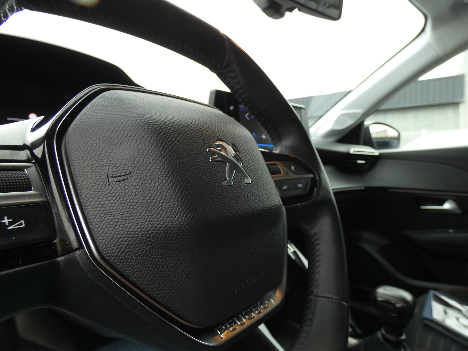 Volant compact croute de cuir, Lion chromé et commandes multimédia sur volant